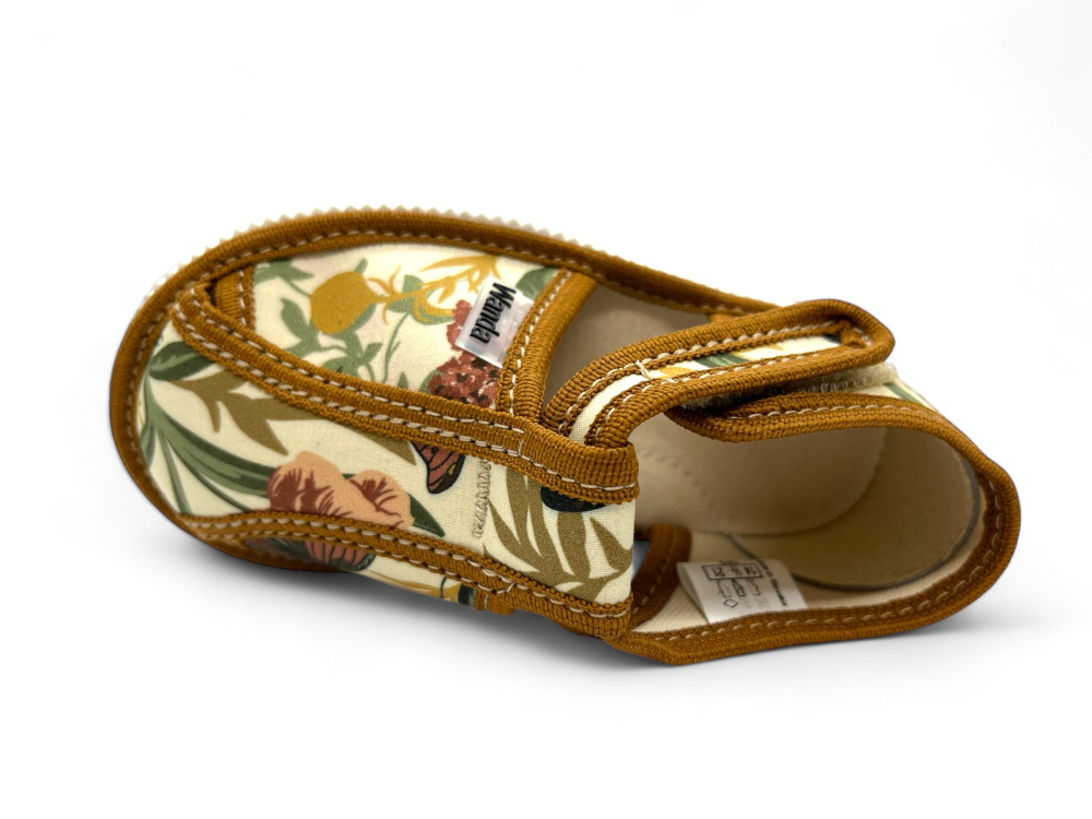 Päta topánočiek je zosilnená flexibilným materiálom a chráni členok proti vykĺbeniu. Podošva v papučkách WANDA je vyrobená zo styroporu, ktorý je hrubý 7 mm a je odolný voči predieraniu. Papučky WANDA sú dobre nazúvateľné , čo zaručuje komfort pri obúvaní a vyzúvaní papučiek.