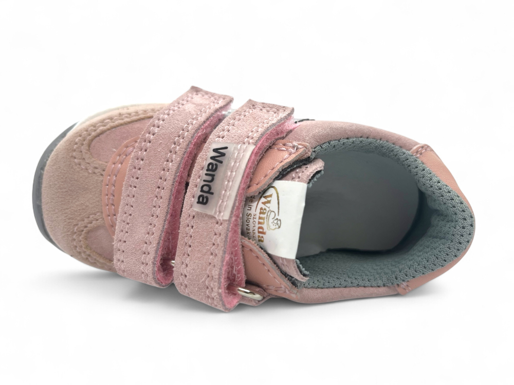 Päta topánočiek je zosilnená flexibilným materiálom a chráni členok proti vykĺbeniu. V oblasti členka majú taktiež mäkkú bandáž pre komfortné nosenie. Podošva má protišmykový dezén, ktorý zabraňuje dieťatku pri chôdzi k pošmyknutiu sa. Podošva je na špičke a päte vyvýšená, čo chráni nožičky v prstovej a pätnej časti. Obuv WANDA je dobre nazúvateľná , čo zaručuje komfort pri obúvaní a vyzúvaní topánočiek.