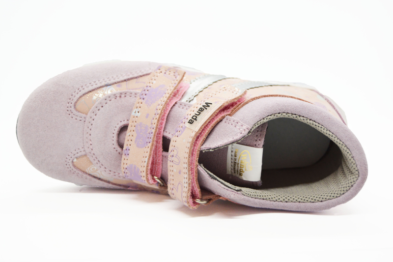 Päta topánočiek je zosilnená flexibilným materiálom a chráni členok proti vykĺbeniu. V oblasti členka majú taktiež mäkkú bandáž pre komfortné nosenie. Podošva má protišmykový dezén, ktorý zabraňuje dieťatku pri chôdzi k pošmyknutiu sa. Podošva je na špičke a päte vyvýšená, čo chráni nožičky v prstovej a pätnej časti. Obuv WANDA je dobre nazúvateľná , čo zaručuje komfort pri obúvaní a vyzúvaní topánočiek.