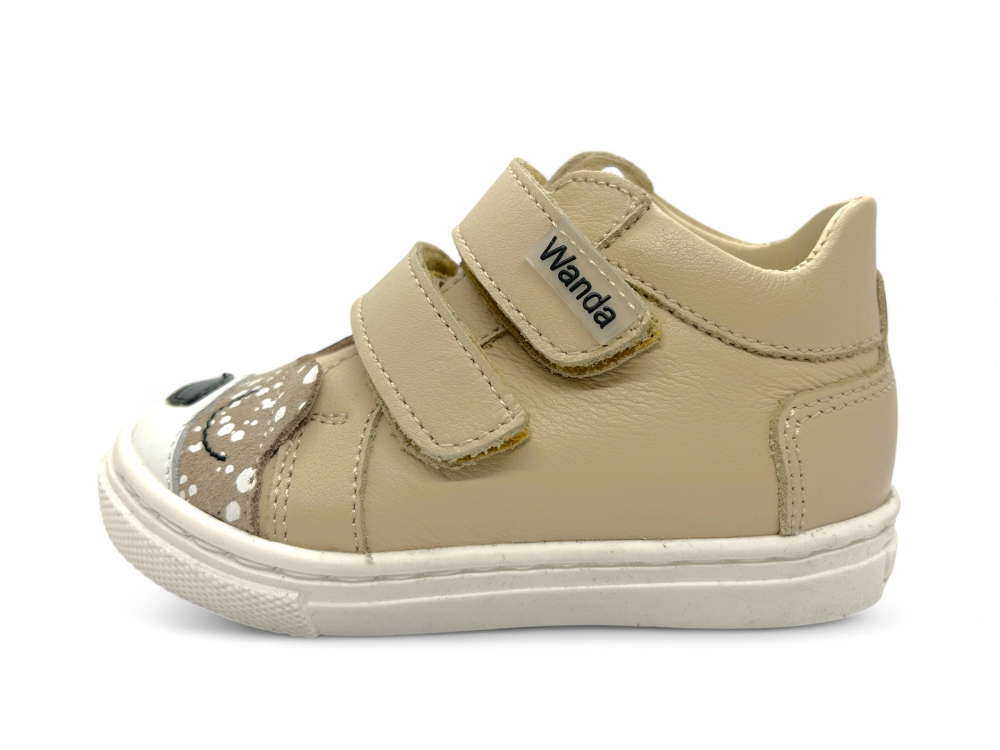 Päta topánočiek je zosilnená flexibilným materiálom a chráni členok proti vykĺbeniu. V oblasti členka majú taktiež mäkkú bandáž pre komfortné nosenie. Podošva má protišmykový dezén, ktorý zabraňuje dieťatku pri chôdzi k pošmyknutiu sa. Podošva je na špičke a päte vyvýšená, čo chráni nožičky v prstovej a pätnej časti. Obuv WANDA je dobre nazúvateľná , čo zaručuje komfort pri obúvaní a vyzúvaní topánočiek.