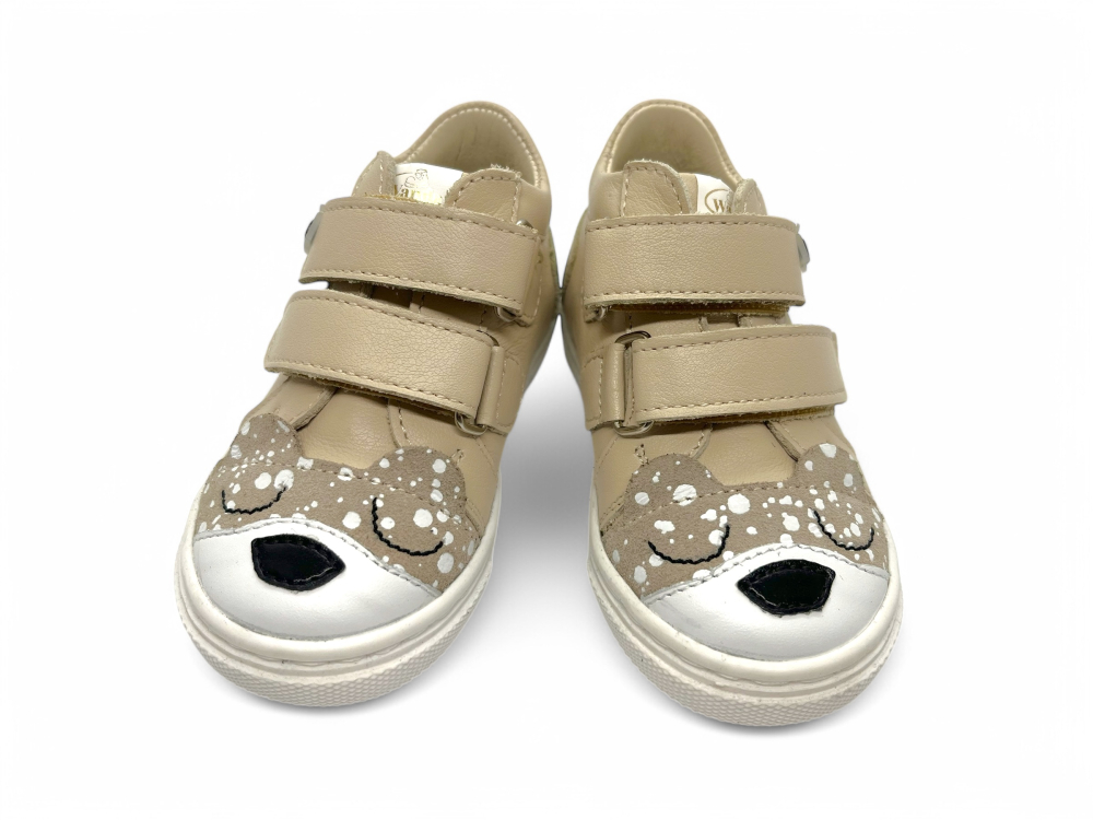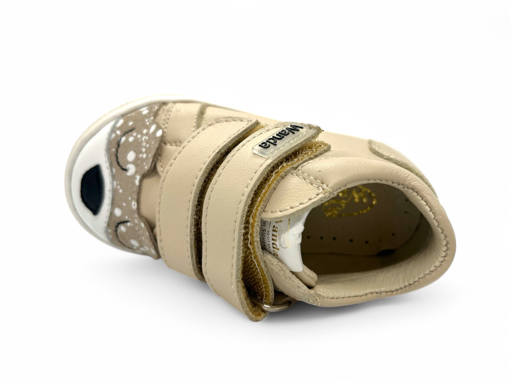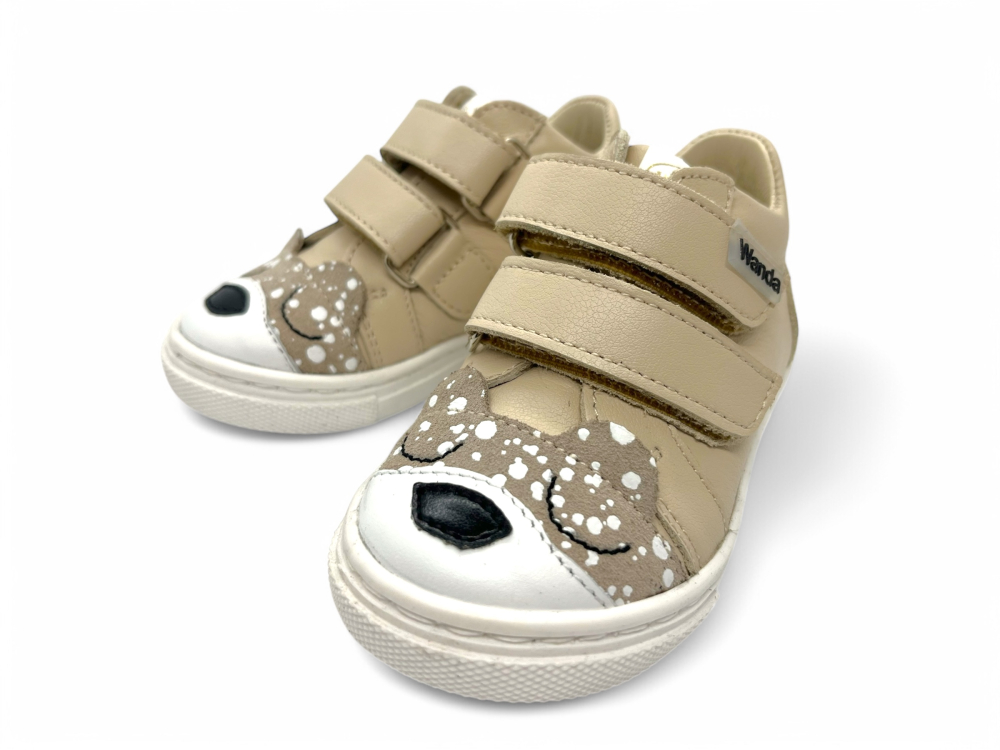 Materiál: Detské kožené tenisky vyrábame výhradne z certifikovaných polotovarov Európskeho pôvodu. Zvršok je z prírodnej hovädzej alebo teľacej kože. Podšívka v topánočkách WANDA je z prírodnej kože. Stielky sú kožené vymäkčené pamäťovou penou, čo zaručuje komfort pri chôdzi. Taktiež sú vybavené podporou pozdĺžnej klenby pre lepší vývoj detskej nôžky.