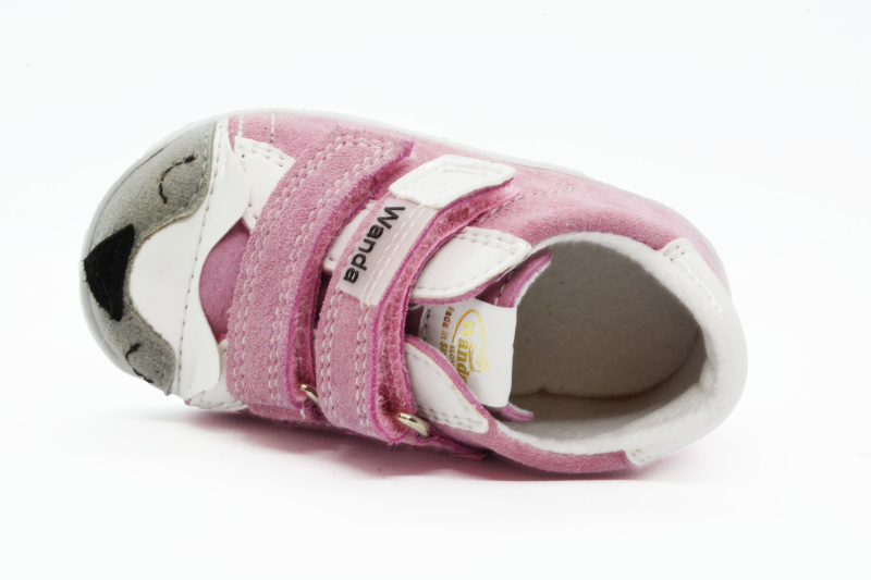 Materiál: Je zdravotne nezávadná, vyrábaná výhradne z certifikovaných polotovarov Európskeho pôvodu. Zvršok je z prírodnej hovädzej alebo teľacej kože. Podšívka v topánočkách WANDA je z dobre savého textilu Cambrella. Stielky sú taktiež z textilného materiálu s mikrovlánkom, čo zaručuje dobrú nasiakavosť, ako i rýchle odparovanie potu z detskej obuvi.Taktiež sú vybavené podporou klenby pre lepší vývoj detskej nôžky.