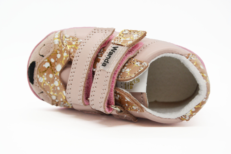 Päta topánočiek je zosilnená flexibilným materiálom a chráni členok proti vykĺbeniu. V oblasti členka majú taktiež mäkkú bandáž pre komfortné nosenie. Podošva topánočiek WANDA je špeciálne vyvinutá pre topánočky pre prvé kroky. Má protišmykový dezén,ktorý zabraňuje dieťatku pri chôdzi k pošmyknutiu sa a tým prispieva k bezpečným prvým krokom. Podošva je na špičke a päte vyvýšená, čo chráni nožičky v prstovej a pätnej časti. Obuv WANDA je dobre nazúvateľná , čo zaručuje komfort pri obúvaní a vyzúvaní topánočiek.