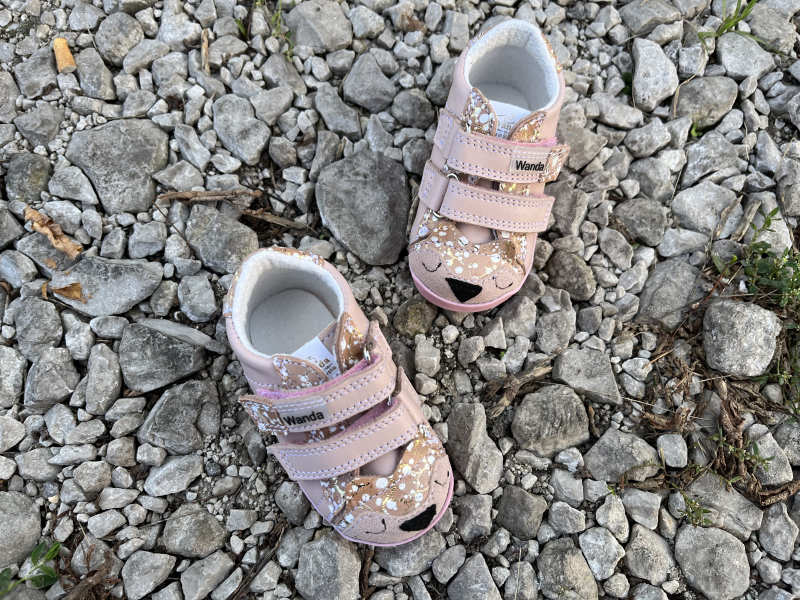 Materiál: Je zdravotne nezávadná, vyrábaná výhradne z certifikovaných polotovarov Európskeho pôvodu. Zvršok je z prírodnej hovädzej alebo teľacej kože. Podšívka v topánočkách WANDA je z dobre savého textilu Cambrella. Stielky sú taktiež z textilného materiálu s mikrovlánkom, čo zaručuje dobrú nasiakavosť, ako i rýchle odparovanie potu z detskej obuvi.Taktiež sú vybavené podporou klenby pre lepší vývoj detskej nôžky.