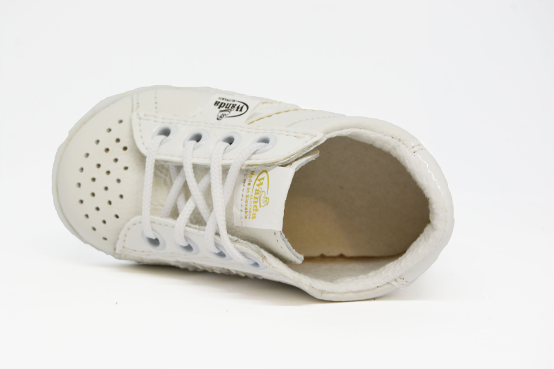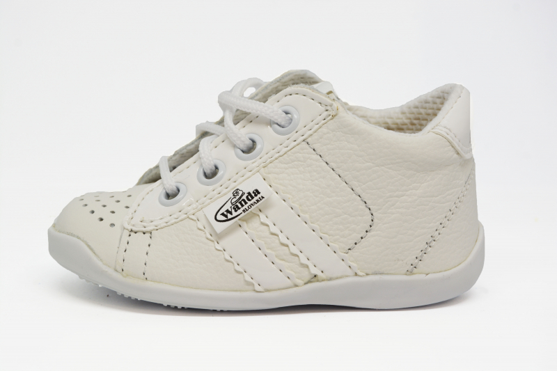 Materiál: Je zdravotne nezávadná, vyrábaná výhradne z certifikovaných polotovarov Európskeho pôvodu. Zvršok je z prírodnej hovädzej alebo teľacej kože. Podšívka v topánočkách WANDA je z dobre savého textilu Cambrella. Stielky sú taktiež z textilného materiálu s mikrovlánkom, čo zaručuje dobrú nasiakavosť, ako i rýchle odparovanie potu z detskej obuvi.Taktiež sú vybavené podporou klenby pre lepší vývoj detskej nôžky.