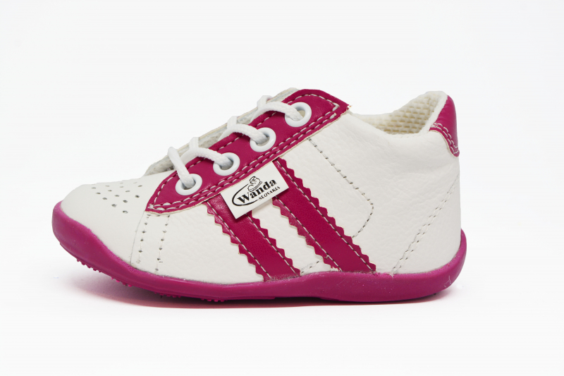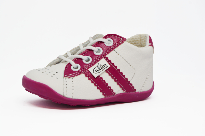 Materiál: Je zdravotne nezávadná, vyrábaná výhradne z certifikovaných polotovarov Európskeho pôvodu. Zvršok je z prírodnej hovädzej alebo teľacej kože. Podšívka v topánočkách WANDA je z dobre savého textilu Cambrella. Stielky sú taktiež z textilného materiálu s mikrovlánkom, čo zaručuje dobrú nasiakavosť, ako i rýchle odparovanie potu z detskej obuvi.Taktiež sú vybavené podporou klenby pre lepší vývoj detskej nôžky.