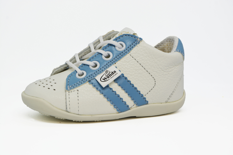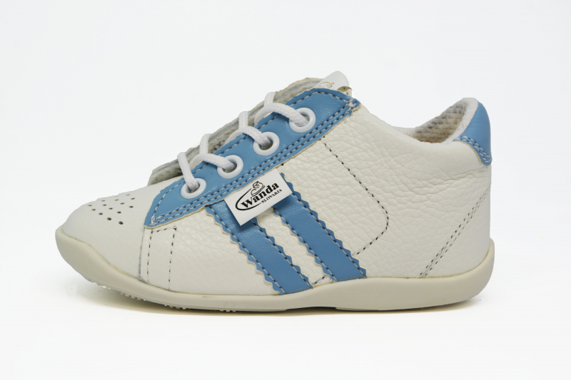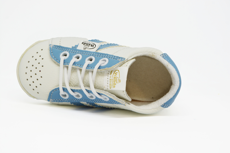 Materiál: Je zdravotne nezávadná, vyrábaná výhradne z certifikovaných polotovarov Európskeho pôvodu. Zvršok je z prírodnej hovädzej alebo teľacej kože. Podšívka v topánočkách WANDA je z dobre savého textilu Cambrella. Stielky sú taktiež z textilného materiálu s mikrovlánkom, čo zaručuje dobrú nasiakavosť, ako i rýchle odparovanie potu z detskej obuvi.Taktiež sú vybavené podporou klenby pre lepší vývoj detskej nôžky.