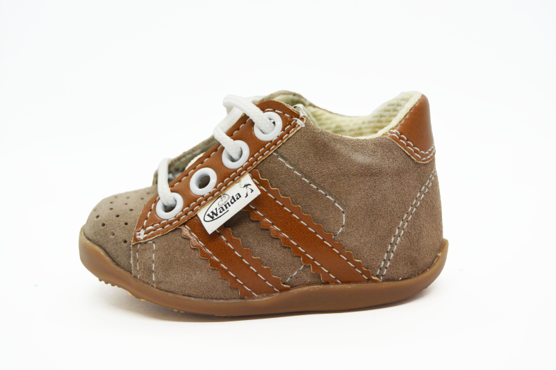 Materiál: Je zdravotne nezávadná, vyrábaná výhradne z certifikovaných polotovarov Európskeho pôvodu. Zvršok je z prírodnej hovädzej alebo teľacej kože. Podšívka v topánočkách WANDA je z dobre savého textilu Cambrella. Stielky sú taktiež z textilného materiálu s mikrovlánkom, čo zaručuje dobrú nasiakavosť, ako i rýchle odparovanie potu z detskej obuvi.Taktiež sú vybavené podporou klenby pre lepší vývoj detskej nôžky.