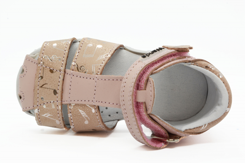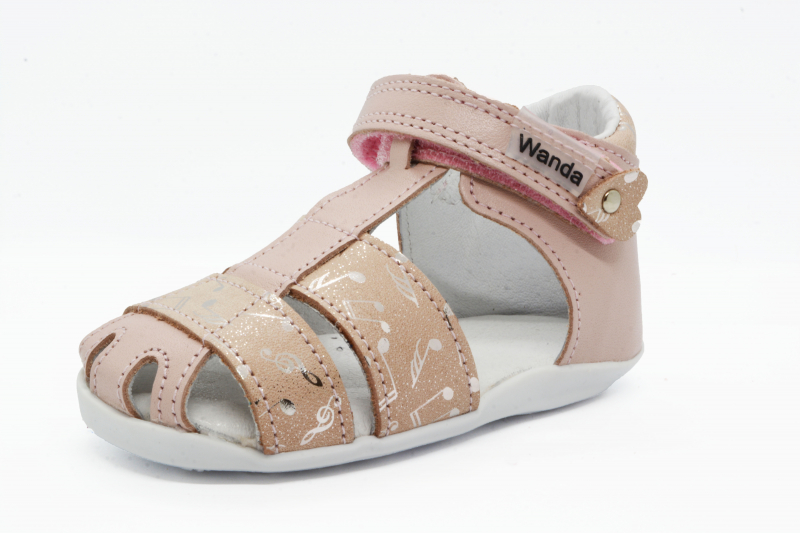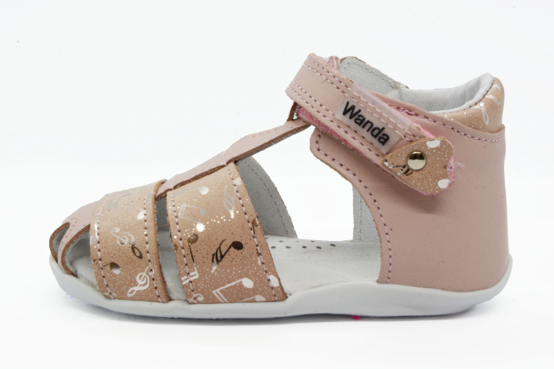 Materiál: Je zdravotne nezávadná, vyrábaná výhradne z certifikovaných polotovarov Európskeho pôvodu. Zvršok je z prírodnej hovädzej alebo teľacej kože. Podšívka v sandálkach Wanda je tiež z prírodnej kože. Stielky sú kožené perforované, čo zaručuje rýchle vyparovanie vodných pár, aby sa noha nepotila. Taktiež sú vybavené podporou klenby pre lepší vývoj detskej nôžky.