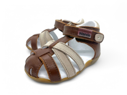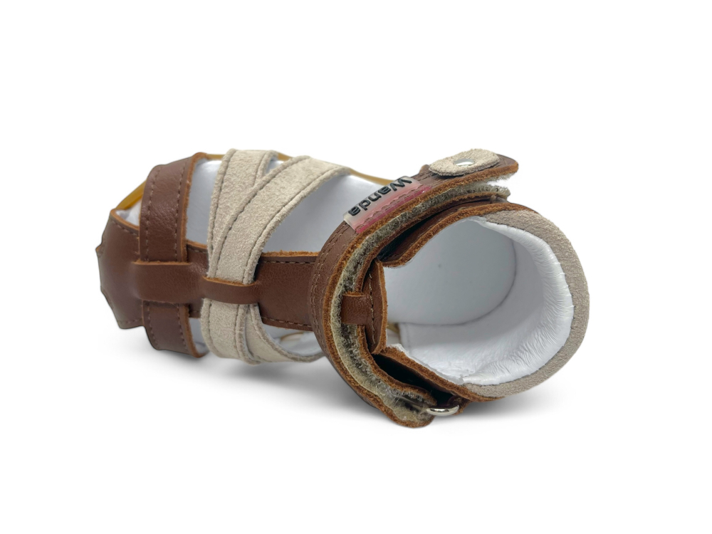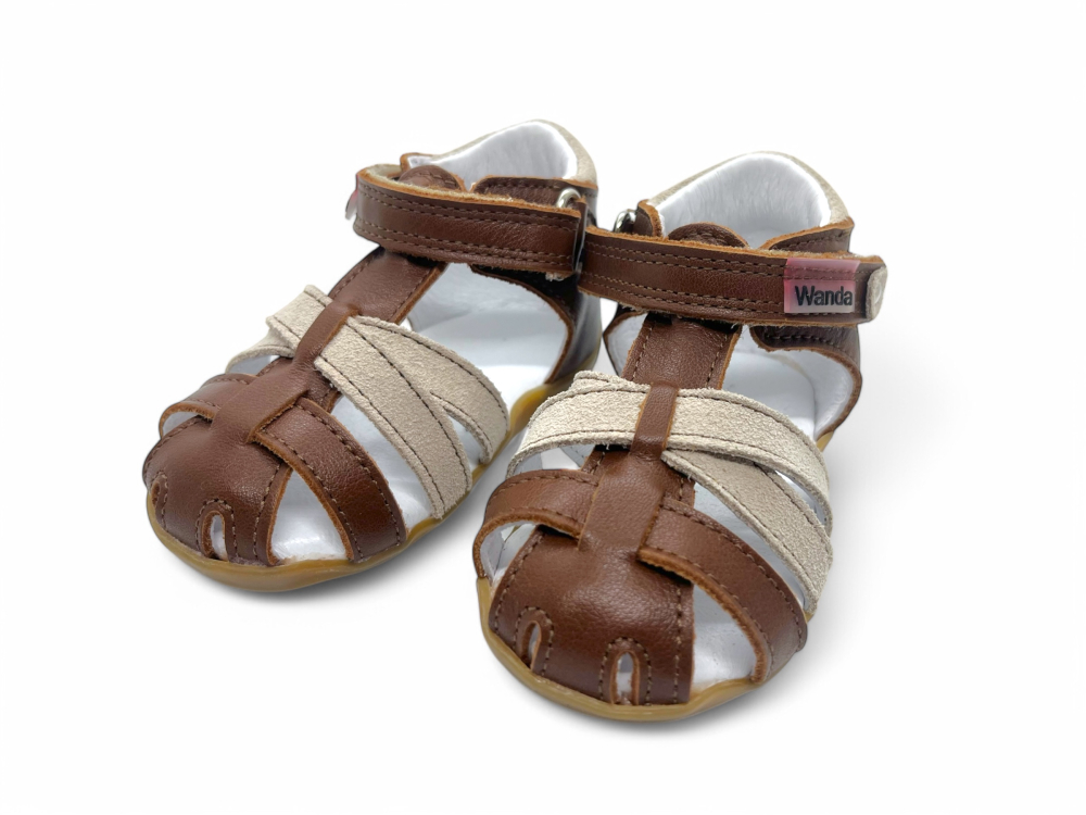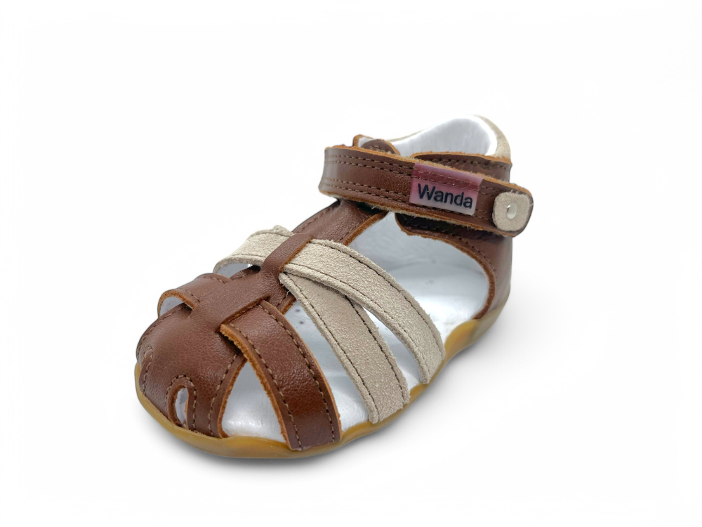 Materiál: Je zdravotne nezávadná, vyrábaná výhradne z certifikovaných polotovarov Európskeho pôvodu. Zvršok je z prírodnej hovädzej alebo teľacej kože. Podšívka v sandálkach Wanda je tiež z prírodnej kože. Stielky sú kožené perforované, čo zaručuje rýchle vyparovanie vodných pár, aby sa noha nepotila. Taktiež sú vybavené podporou klenby pre lepší vývoj detskej nôžky.