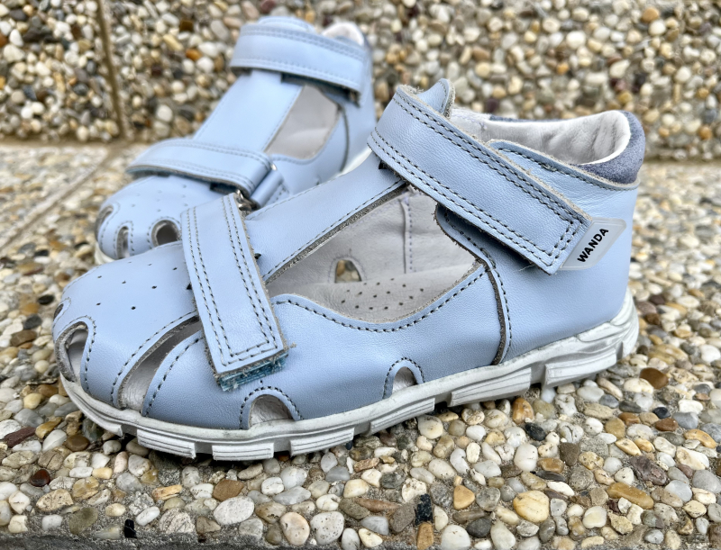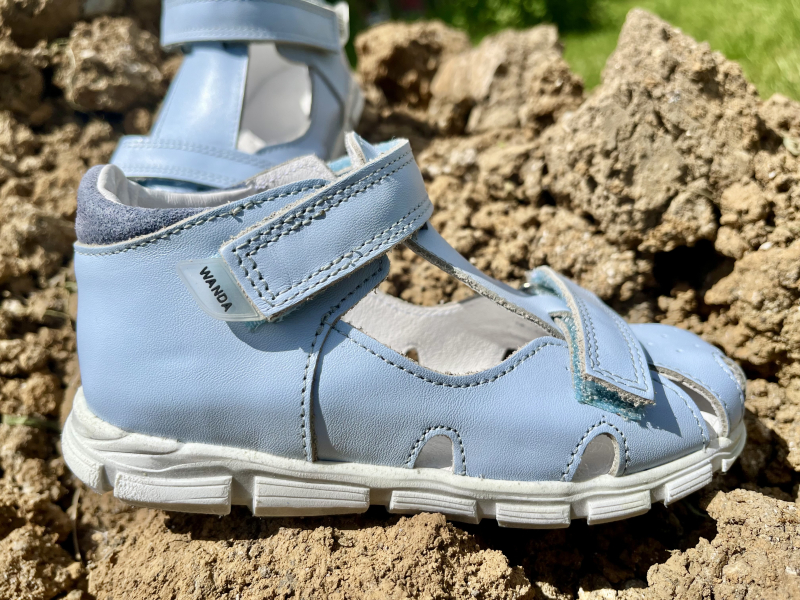 Materiál: Je zdravotne nezávadná, vyrábaná výhradne z certifikovaných polotovarov Európskeho pôvodu. Zvršok je z prírodnej hovädzej alebo teľacej kože. Podšívka v sandálkach Wanda je tiež z prírodnej kože. Stielky sú kožené perforované, čo zaručuje rýchle vyparovanie vodných pár, aby sa noha nepotila. Taktiež sú vybavené podporou klenby pre lepší vývoj detskej nôžky.