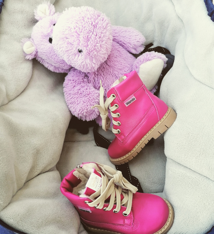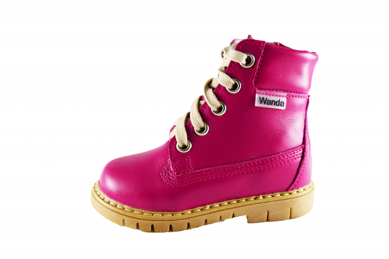 Materiál: Je zdravotne nezávadná, vyrábaná výhradne z certifikovaných polotovarov Európskeho pôvodu. Zvršok je z prírodnej hovädzej alebo teľacej kože. Podšívka v topánočkách WANDA je zložená z kombinácie prírodnej vlny s vysoko odolnou syntetickou v pomere 50/50, čo zaručuje tepelnú stálosť a vysokú odolnosť voči predratiu. Stielky sú taktiež zo zmesy vlny, čo zabezpečuje výbornú hrejivosť, ako i rýchle odparovanie potu z detskej obuvi. Taktiež sú vybavené podporou klenby pre lepší vývoj detskej nôžky.